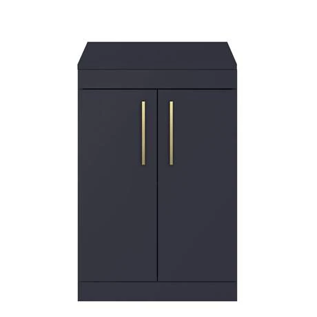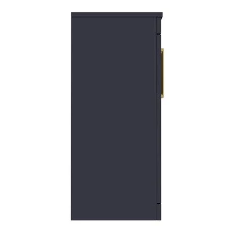 The contemporary matt blue Arezzo furniture range, with it’s clean lines this vanity unit is perfect for renewing the style in any bathroom. Designed for use with a counter top basin (not included), it’s stylish modern design hides all unsightly pipework creating a neat modern look. A internal shelf provides generous storage space for your toiletries, helping to keep your bathroom clutter free. Features a eye-catching and stylish matt blue finish with on-trend modern brushed brass square bar handles.