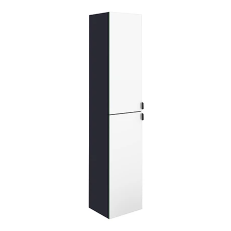 The Arezzo matt blue bathroom furniture range combines up to date looks with practical storage. Features 2 stylish soft close mirrored doors with modern slim matt black handles helping to prevent finger prints and smudges. Perfect for adding modern style to any bathroom the space saving mirrored Arezzo wall hung tall storage cabinet with its 3 internal shelves provides plenty of space for towels and toiletries. Supplied with wall fixings.Â