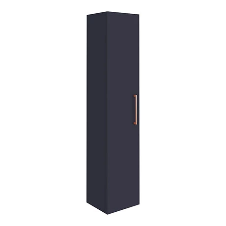 The Arezzo matt blue bathroom furniture range combines up to date looks with practical storage. Features a soft close door and provides plenty of space for toiletries, the Arezzo wall hung tall storage cabinet is perfect for adding modern style to any bathroom. Supplied with a on-trend modern rose gold square bar handle and wall fixings.