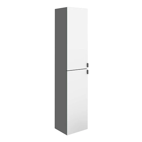 The Arezzo matt grey bathroom furniture range combines up to date looks with practical storage. Features 2 stylish soft close mirrored doors with modern slim matt black handles helping to prevent finger prints and smudges. Perfect for adding modern style to any bathroom the space saving mirrored Arezzo wall hung tall storage cabinet with its 3 internal shelves provides plenty of space for towels and toiletries. Supplied with wall fixings.Â