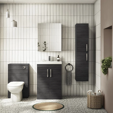 With its bold contrasting colours and wealth of storage space, the Brooklyn Black Vanity Furniture Package is both practical and visually striking. Featuring a 610mm wide freestanding vanity unit with a basin and storage space – plus a mirror cabinet and black bathroom cabinet with internal shelves – this set offers plenty of room for all your towels and toiletries. The package comes with a matching toilet that has a concealed cistern to complete the sleek look as well as a soft close seat that keeps noise to a minimum.
