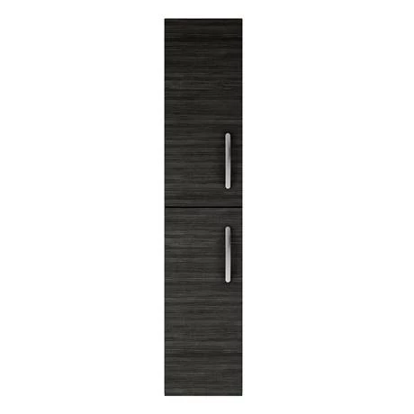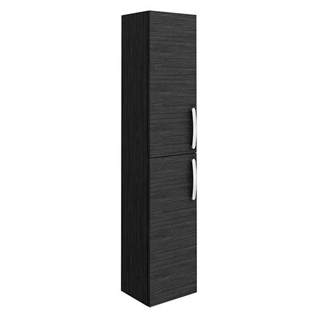 Store towels and other bits in narrow bathroom spaces with the practical Brooklyn Wall Hung Tall Storage Cabinet. This contemporary tallboy bathroom cabinet has an attractive jet black textured wood effect, creating a chic look. Behind two soft closing doors you’ll find three handy shelves for your toiletries, electronics and flannels. This unit is part of the Brooklyn range – why not coordinate with the Brooklyn Black Vanity Unit to create a sense of cohesion? For your convenience, the Brooklyn bathroom cabinet also comes with wall fixings to make fitting quick and easy.